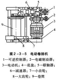 (3)在卷揚機前面安裝的第一個導向滑車的中1一可逆控制器;2一電磁制動器;心線必須與卷筒的中心線垂直,并與卷筒相隔大于3―電動機;4一底盤;5――聯軸器;卷筒寬度的20倍距離,跑繩應從卷筒的下方繞人。6一減速器;7--小齒輪;