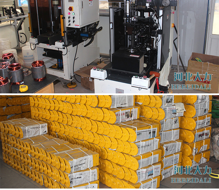 1、定子、轉(zhuǎn)子比市面上其他品牌電機(jī)同類部件加長(zhǎng)1公分,使用更多銅線,確保電機(jī)升溫更慢,功率更大,起吊力量更有保障。